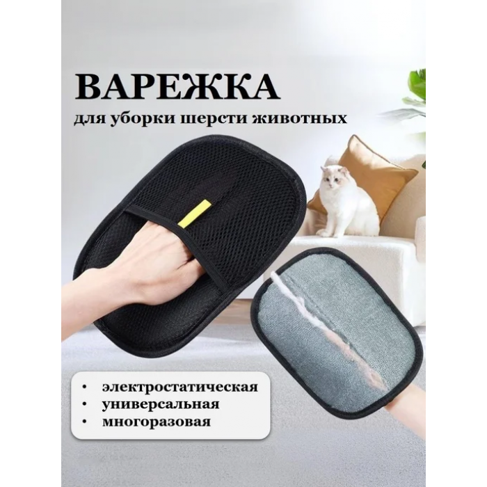 Как использовать? Наденьте на руку, проведите по поверхности – шерсть останется на варежке. После использования стряхните или постирайте.
